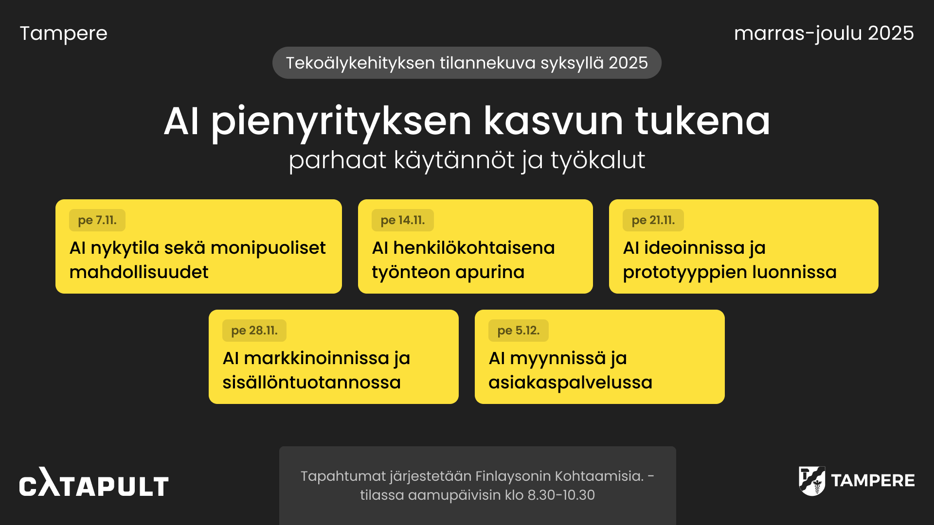 AI pienyrityksen kasvun tukena – parhaat käytännöt ja työkalut tapahtumasarja 7.11-5.12.2025 30.10.2025