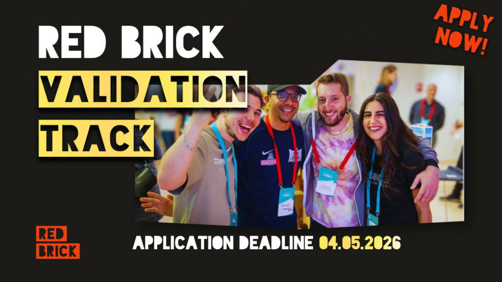From idea to evidence in 6 weeks! Do you have a startup idea? Are you looking to test it against the real world? Red Brick Validation track is a 6-week program for ambitious early-stage startup projects, looking for problem validation, customer discovery, and market testing. 6 Weeks 6 Workshops 10 Teams The program is fully online and free! It offers weekly workshops to move from fuzzy concepts to clarity, build a validation mindset, get to market early. At the end, you should be able to decide whether to continue, pivot or stop. The weekly sessions take place once a week after 15:00 (Finnish time). Participation is mandatory. Who are we looking for to join? All you need is a team of 2 or more and a startup idea you are willing to test! If you have the mindset and willingness to develop your idea further, this is for you! Register Copy the event page link