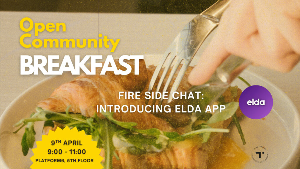 Open Community Breakfast : the story behind Elda app Join us for our next Tribe Community Breakfast at Platform6 as we welcome Elda Solutions for a fireside chat on building community through technology.Elda is on a mission to make sure no one grows old alone, creating a safe and easy-to-use platform that helps seniors find friendships, local activities, and a stronger sense of belonging. Their work stands against loneliness by creating equal access to connection in retirement. In this breakfast conversation, we’ll dive into:✨ the founder journey behind Elda✨ building human-centered products for real societal problems✨ how startups can create both impact and scalable growth✨ what it takes to build trust, accessibility, and community through tech Whether you’re a founder, student, builder, or simply curious about startups solving meaningful problems, this is a conversation you won’t want to miss.🎤 Fireside Chat Topic: What is the story behind Elda app? Ilmoittaudu Kopioi tapahtumasivun linkki